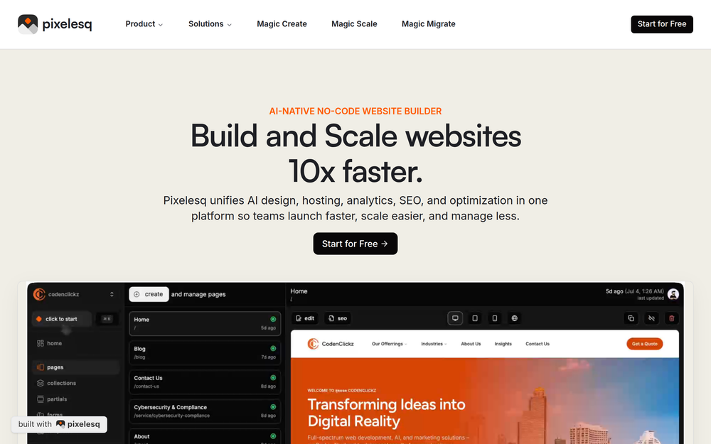 Pixelesq 是一款创新的 AI 原生、无代码网站生成器,旨在彻底改变网站的创建、扩展和管理方式。它提供了一个统一的平台,集成了 AI 驱动的设计、内容生成、托管、分析、SEO 和优化,使团队能够显著加快网站上线速度,并以更低的运营成本进行管理。