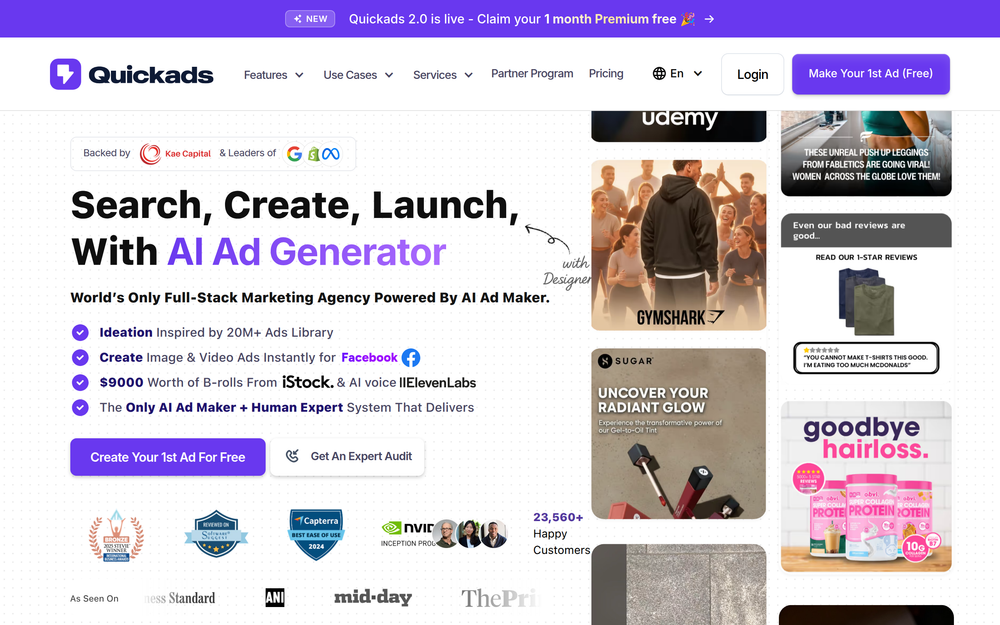 Quickads 是一款全方位的 AI 驱动广告平台,旨在彻底改变企业创建、优化和部署数字广告活动的方式。通过利用拥有超过 2000 万个广告的海量库和先进的 AI 算法,Quickads 使用户能够在几秒钟内生成高性能的图文和视频广告,并为 Meta、TikTok 和 YouTube 等平台量身定制。