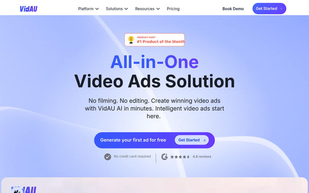 利用先进的 AI,在几分钟内将产品图片、URL 或文本转化为专业的视频广告。