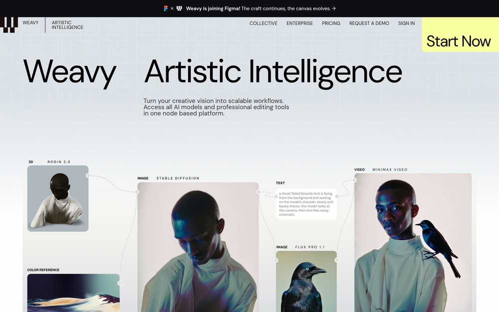 Weavy 是一款前沿平台,旨在通过将大量的 AI 模型和专业编辑工具无缝集成到单一、直观的节点式界面中,彻底改变创意工作流。Weavy 面向 创意专业人士,赋能用户将艺术愿景转化为可扩展且高质量的产出,同时不损害工艺水准。该平台独特的方法被称为“艺术智能”(Artistic Intelligence),它弥合了先进 AI 能力与人类创意之间的鸿沟,开启了艺术表达的新纪元。